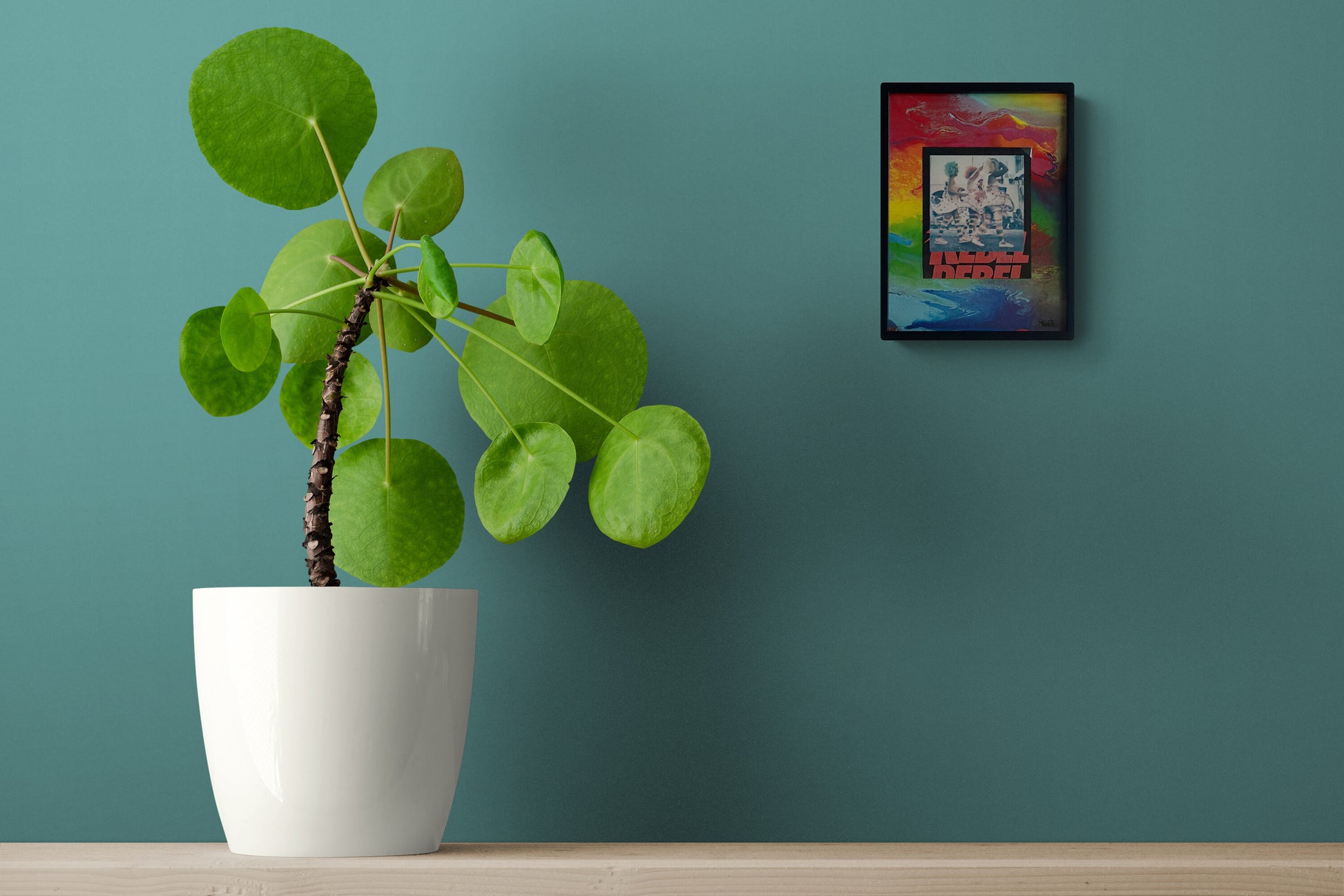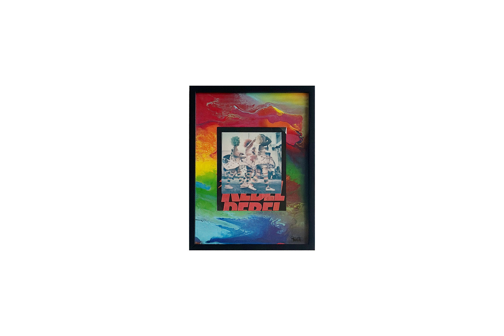 Tirage instantané réhaussé sur carton, fond peint à la bombe